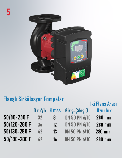 | 50/180-280 F | DN 50 PN 6/10 uyumlu | 280 mm | 33-800 W | 42 | 16 | Fiyat Sorunuz |