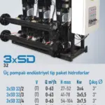 Üç pompalı paket hidroforlar ortak bir kaide üzerine montajı yapılan her
