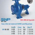 Yatay milli, tek kademeli NORM santrifüj pompadır. (TS EN 733) İçinde katı parçacıklar ve elyaf bulunmayan, temiz veya çok hafif kirli, düşük viskoziteli sıvılar için uygundur.