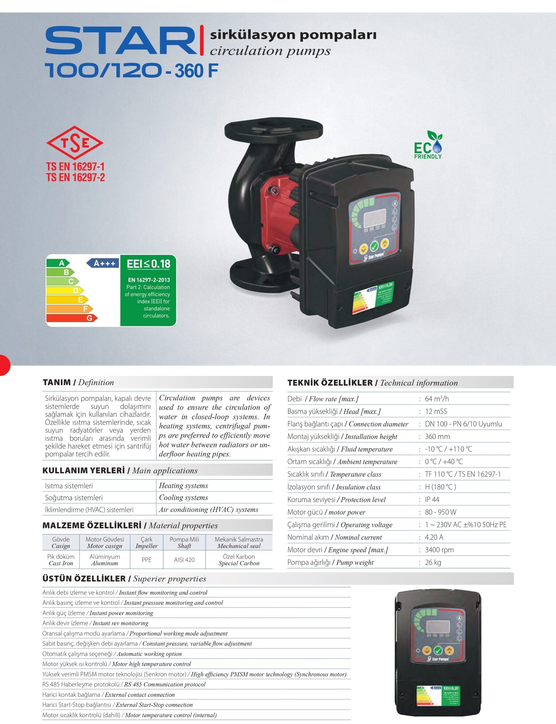 - Pompa ağırlığı : 26 kg