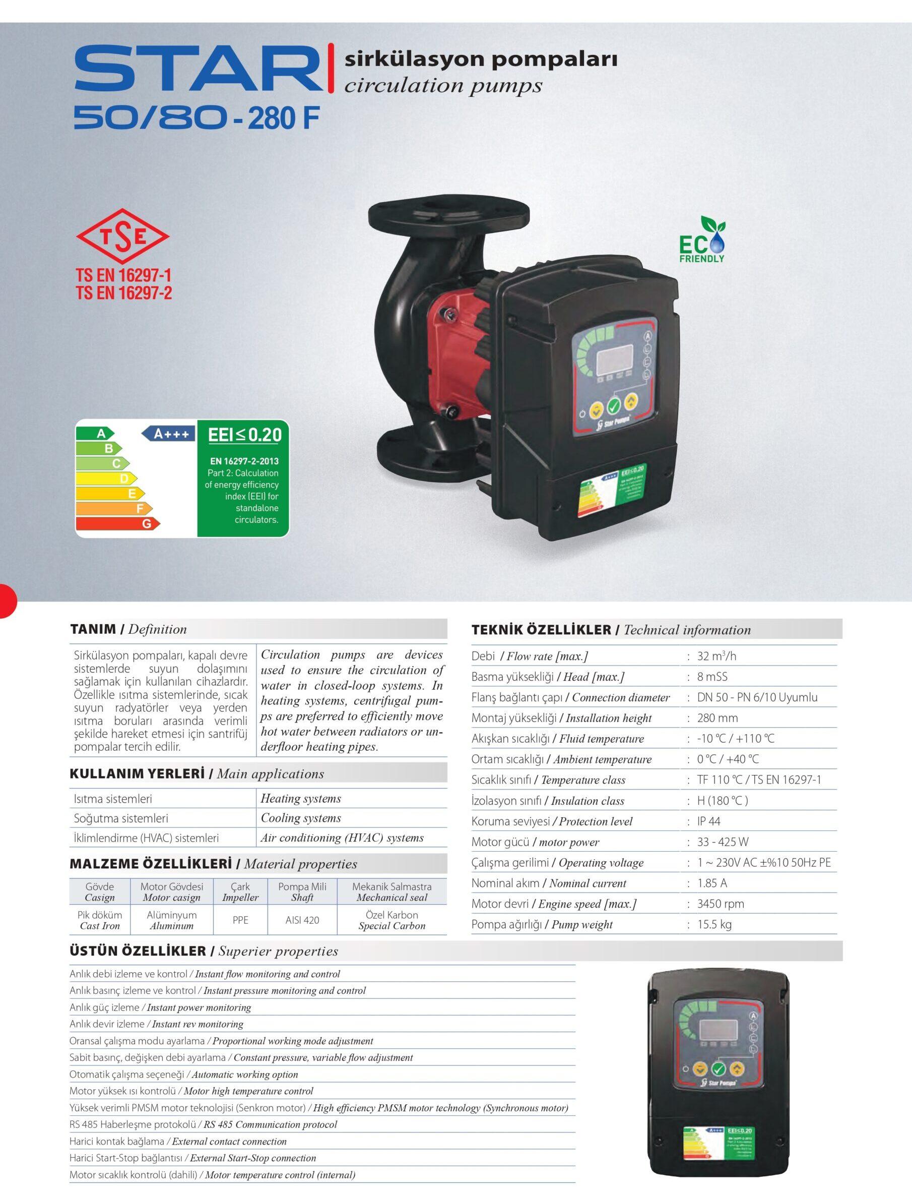 - Flanş bağlantı çapı : DN 50 – PN 6/10 Uyumlu